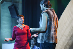 WINTER IS COMING und im zweiten Teil hält das Science Busters-Team in „Game of Thrones“-Klamotte Einzug, komplett mit Trommelschlägen (Martin Moder, PhD) und Feuer.Winter is coming | Science Busters Ja, sogar Drachen werden gesichtet, entfliehen in unendliche Bühnenhimmel-Weiten oder werden keck gekidnappt. Dr. Florian Freistetter – den Astronomen und Science-Blogger – lässt das nur scheinbar kalt. Beherzt zieht er als Daenerys Sturmtochter sein Programm durch und hat längst die Mutter der Drachen in sich entdeckt. Kokett wirft er die künstliche blonde Wallemähne zurück und erklärt im Vorbeispazieren, warum man die Eismauer mit so viel weniger Aufwand als einem dahergeflogenen Eisdrachen hätte einreißen können. Überhaupt outet sich der Astronom als eingefleischter GoT-Fan der ersten Stunde und schiebt humorig ein paar wetterlastige Fakten hinterher. Warum in Westeros Winter herrscht, von dem niemand weiß, wie lange er dauert? Kein Problem, total einfach eigentlich, zumindest wenn Florian Freistetter enthusiastisch zur Erklärung ansetzt.